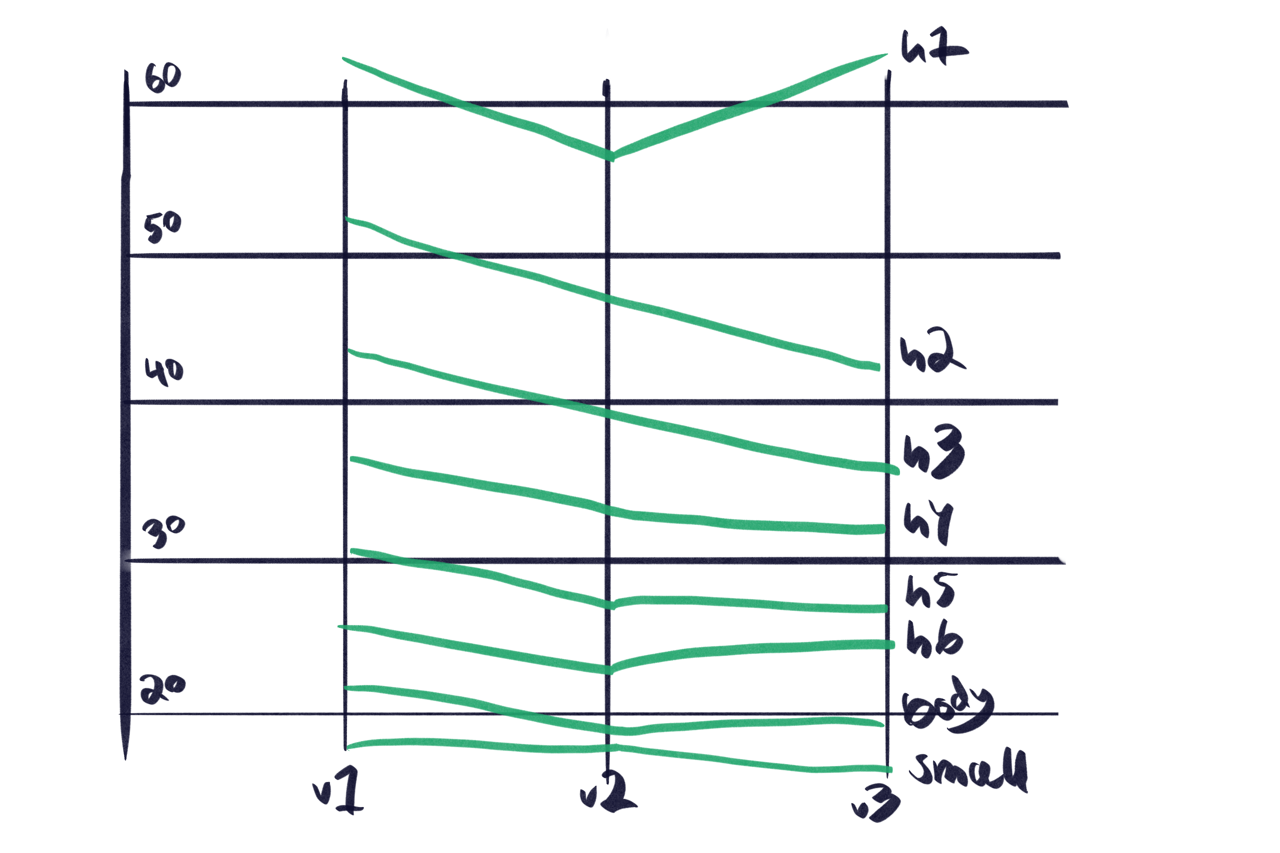 I then do the same for all the headings sizes, paying extra attention to the smallest line-heights to make sure the ascenders don’t intersect with the descenders of the following line.